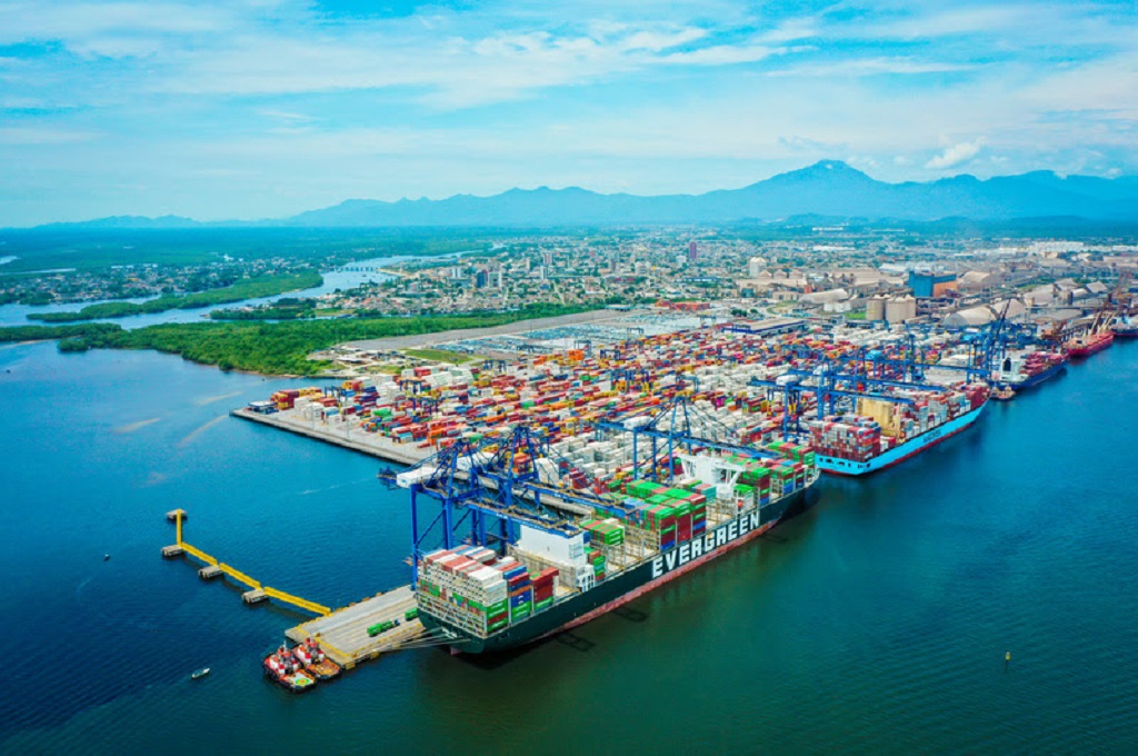 O novo navio Marco Polo pode carregar mais de 16.000 contêineres e atingir uma velocidade de 24 nós. Depois de uma parada recente nesta cidade